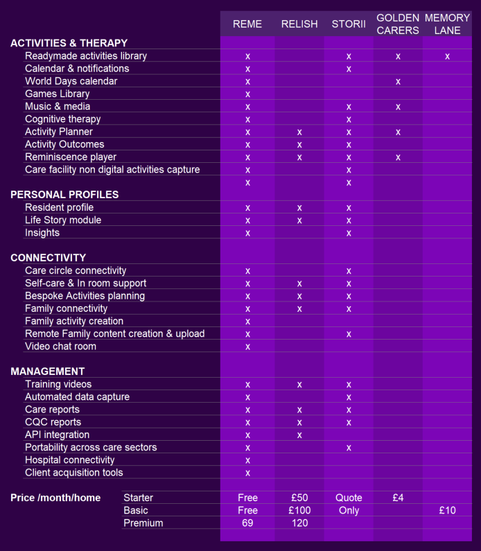 - There are very few comparable and rival products, but the bad news is that the care sector is always slow to adopt.